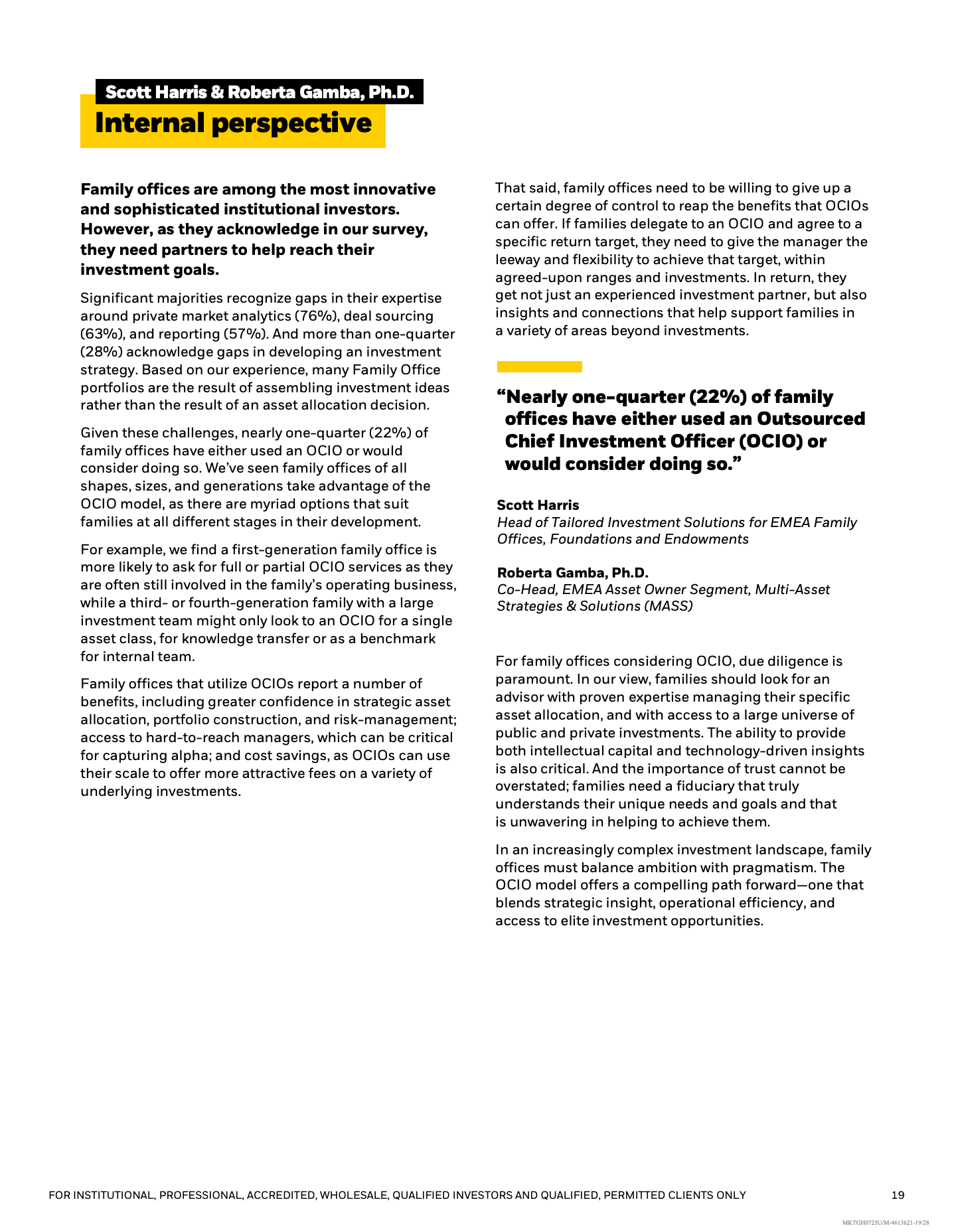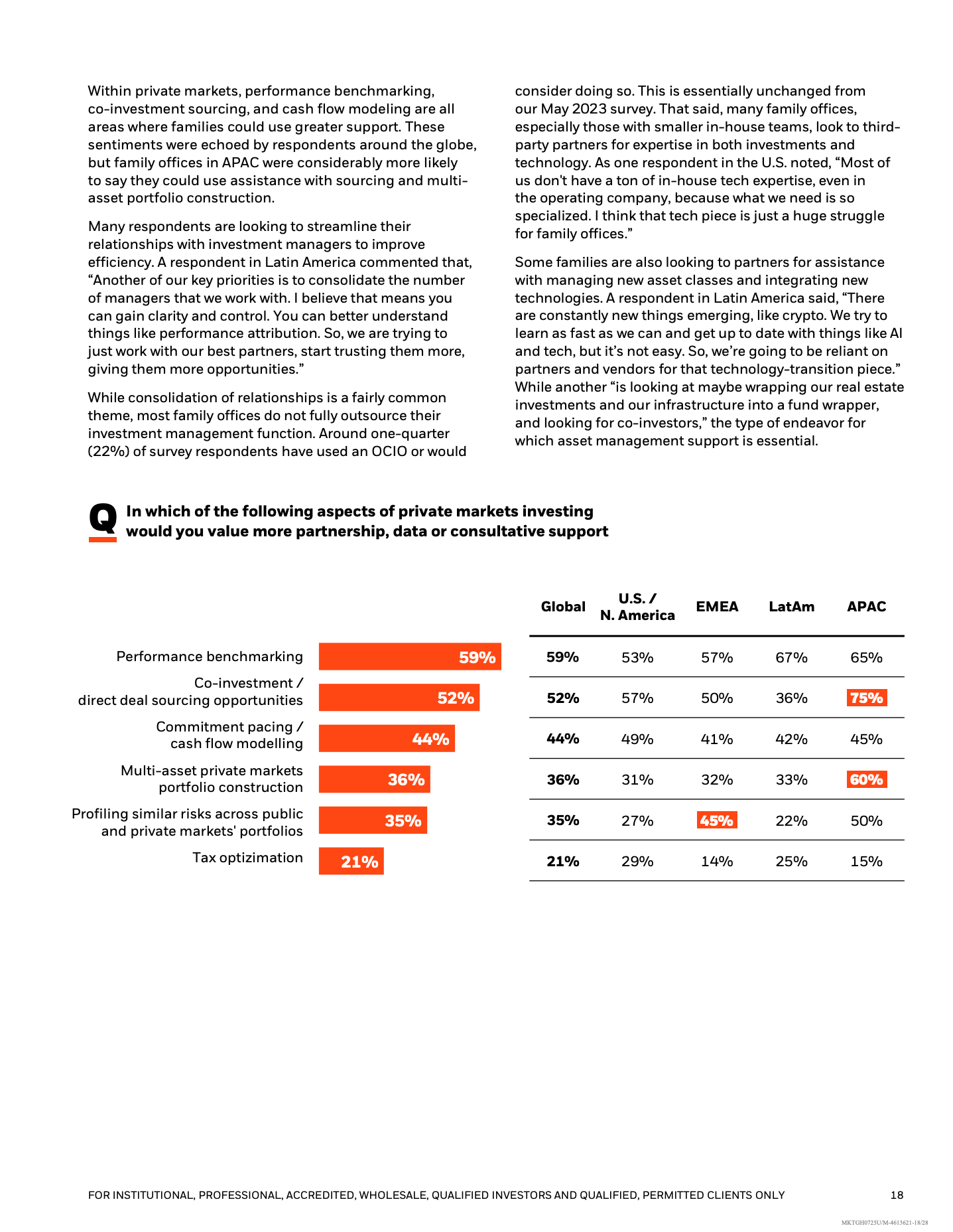 在能力建设方面,家族办公室正由“单点外包”走向“深度协作”。75%的受访者认为自身在私募市场分析能力上存在不足,63%在项目获取方面存在短板,22%已使用或考虑使用外包首席投资官模式。关系整合与减少管理人数量,成为提升效率与透明度的重要手段。