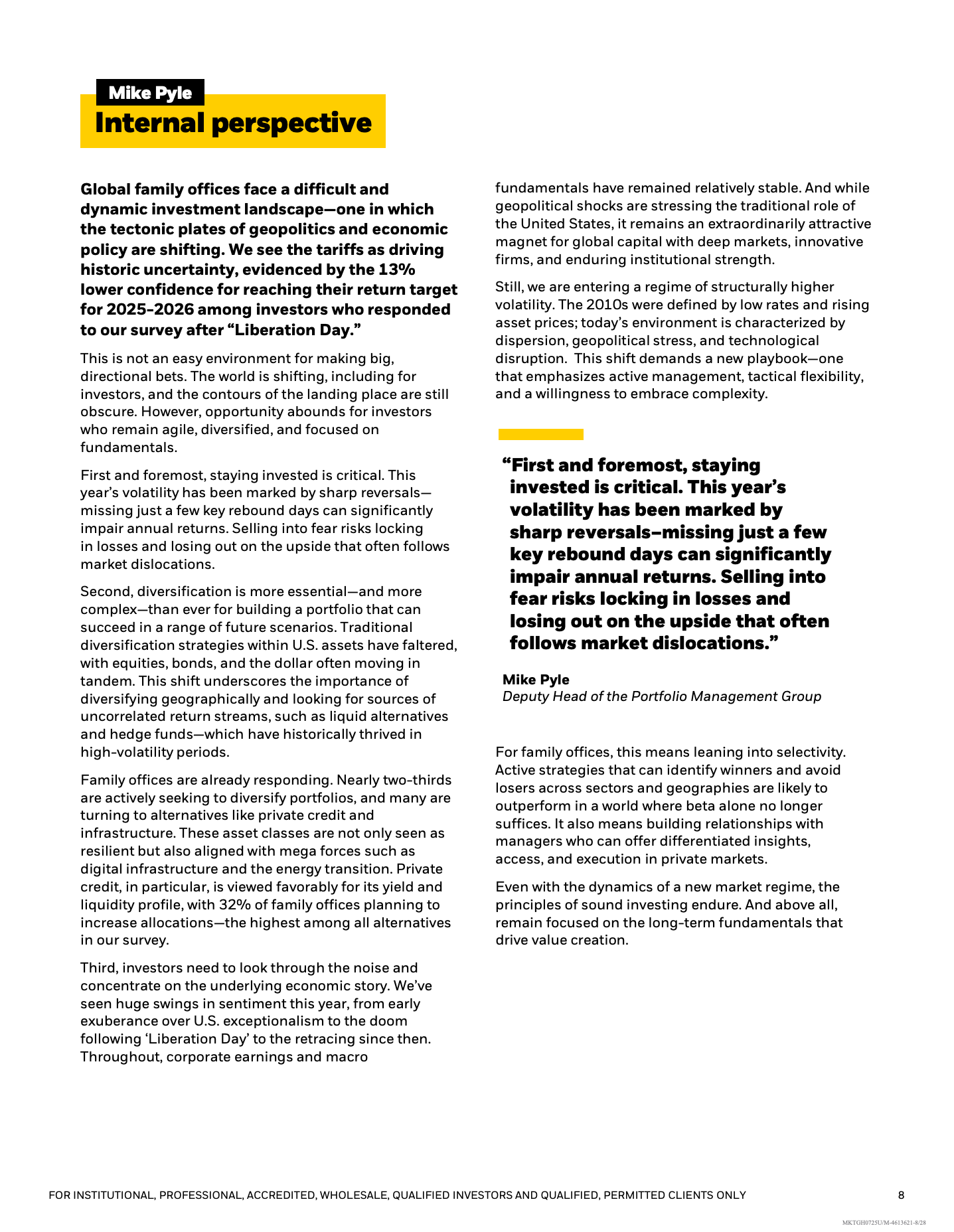 综合来看,家族办公室正在进入一个高波动、低确定性的长期新常态。未来配置趋势将更强调私募信贷与基础设施的结构性收益、更严格的费用与流动性审视,以及通过合作伙伴弥补能力缺口。在规则被重写的时代,保持分散化、主动性与长期视角,将成为家族资本穿越周期的核心竞争力。