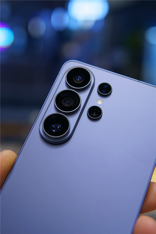 工业设计方面,Galaxy S26 Ultra正面配备了一块6.9英寸顶级直屏,背部的镜头模组延续了经典的纵向排列风格,左侧的三颗主镜头被巧妙地安置在椭圆形相机岛内。整体造型在保留家族化基因的同时,细节处的打磨更显高级感。