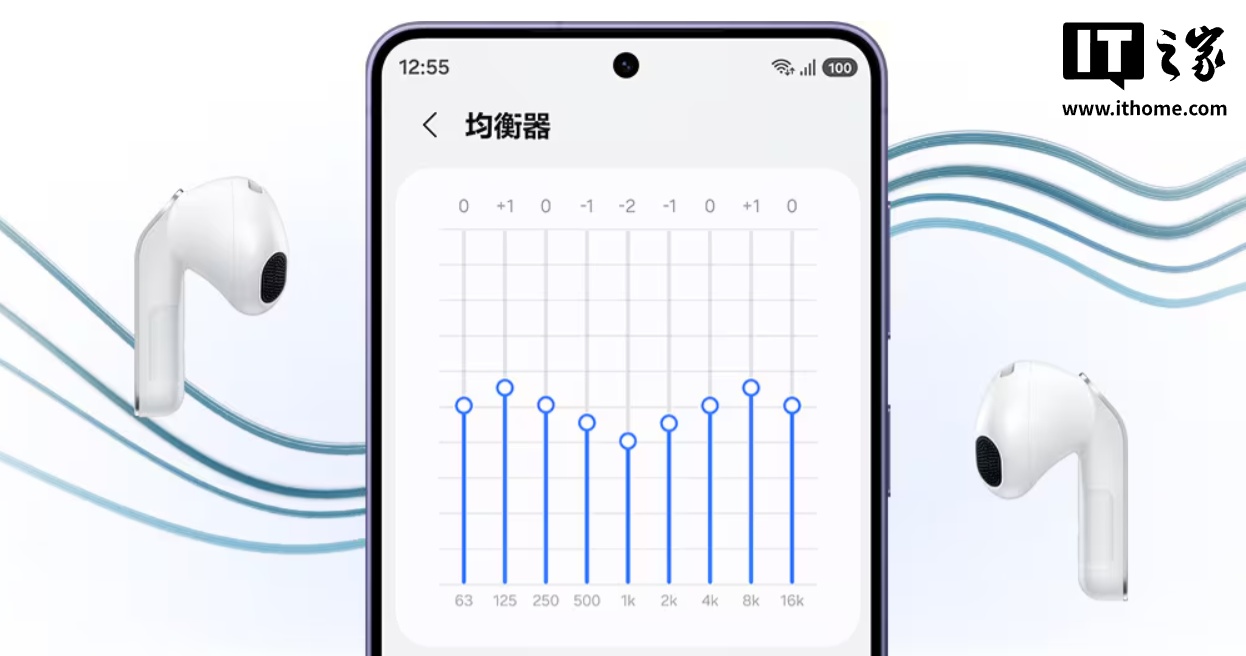Galaxy Buds4 搭载 11 毫米扬声器,三星音频编解码技术(SSC)支持 24-bit/96kHz 高解析音频;用户还可通过 9 段均衡器自由调节低、中、高频,定制低音、高音与整体音色。