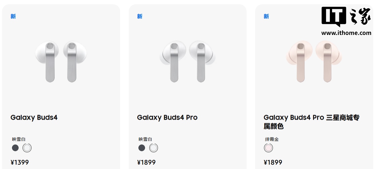 IT之家 2 月 26 日消息,在今日的三星 Galaxy Unpacked 发布会上,三星发布了 Galaxy Buds4 和 Galaxy Buds4 Pro 无线耳机,售价分别为 1399 元和 1899 元。
