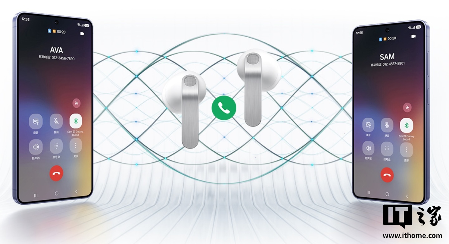 Galaxy Buds4 的 6 颗麦克风环绕于头部周围,配合基于深度神经网络(DNN)技术,智能识别人声,剥离环境杂音;超清晰通话加持下,音频还通过超宽带(SWB)技术,以 16kHz 频宽在 Galaxy Buds4 与 Galaxy 智能手机之间无损传输。