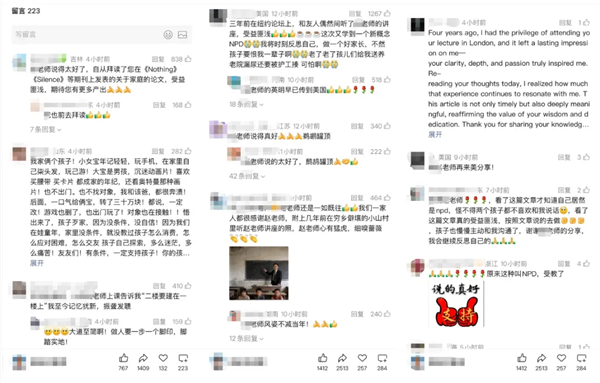 “三年前偶然在纽约论坛上听到您的讲座”、“我在英国上学时曾有幸听过老师的讲座”、“醍醐灌顶受教了”…… 桃李们从全世界赶来,用自身经历和高调支持在评论区为老王“塑起金身”,其专家身份得到广泛口碑认证。