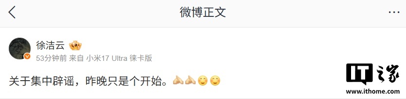 值得一提的是,小米集团董事长特别助理、战略市场部副总经理徐洁云就曾表示:“关于集中辟谣,昨晚只是个开始。”