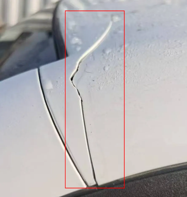 车辆在正常使用过程中,A柱上方连接处,靠近车顶的部位,出现了20厘米左右的裂痕。