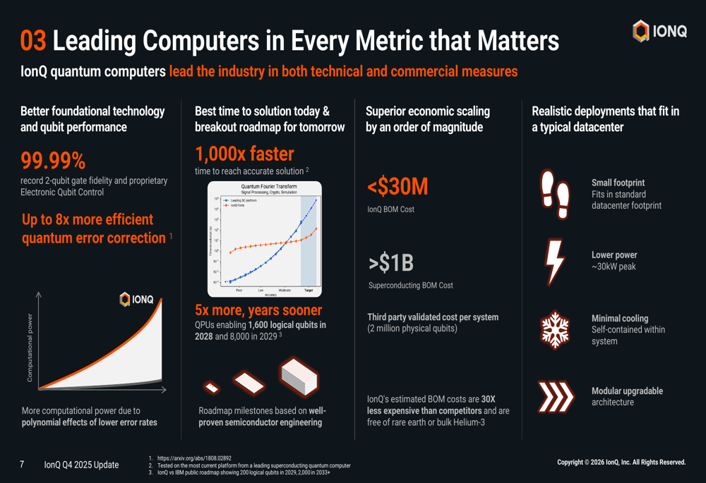 IonQ强调了其在量子计算性能方面的技术优势,包括业界领先的99.99%双量子比特门保真度。