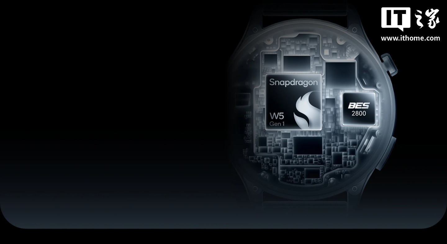 据介绍,这款手表提供黑色 / 杜松绿两种表带,采用骁龙 W5 Gen 1+BES2800 双芯片架构,内置 2GB 内存 +32GB 存储空间,配备 930mAh 电池,电池含有 10% 硅碳负极材料,智能模式下续航可达 6 天、省电模式下续航可达 18 天。