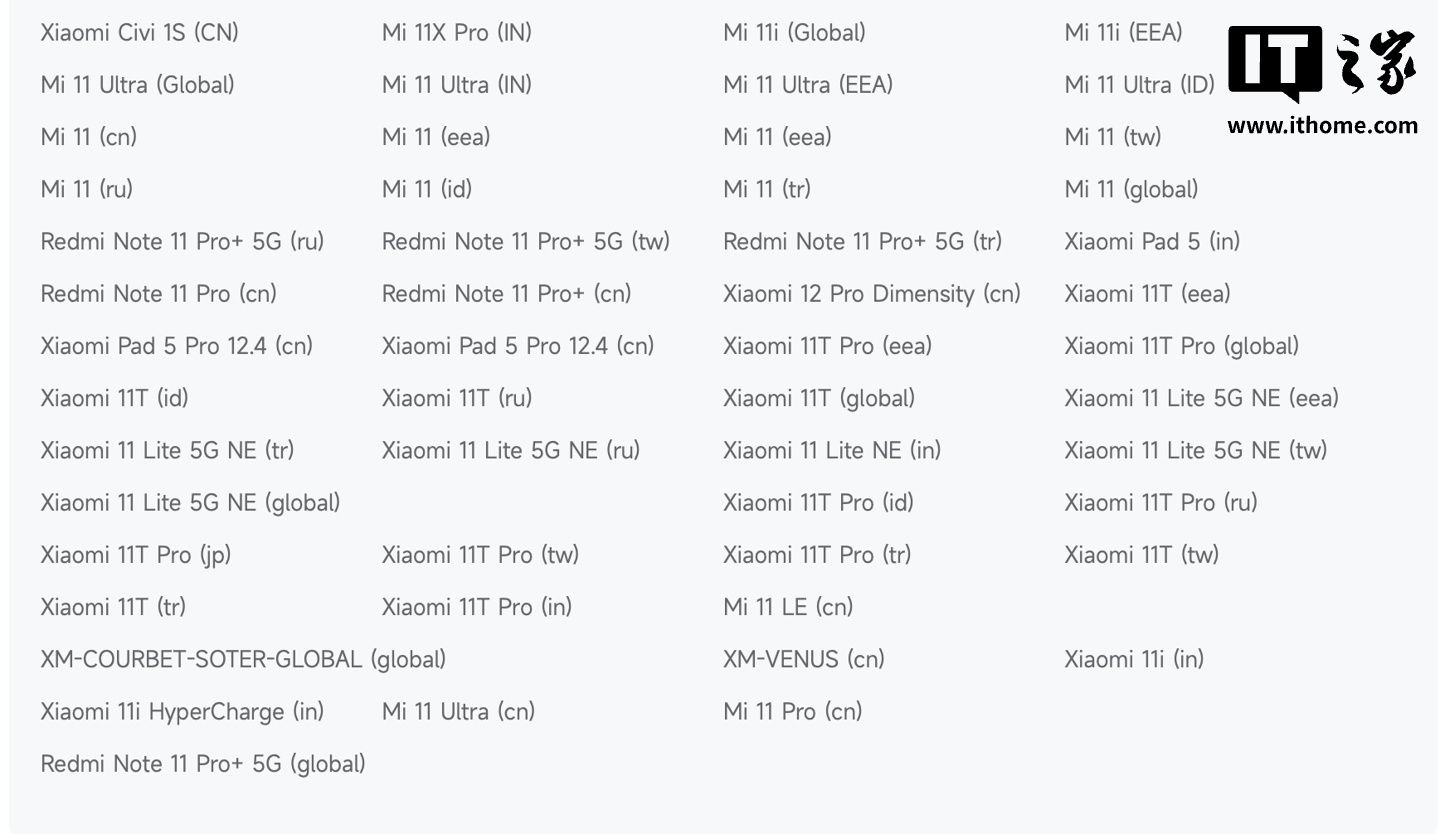 IT之家 2 月 28 日消息,小米安全中心今天更新终止维护机型(EOL)名单,其中 11 全系、12 天玑版以及平板 5 全系等机型在列。