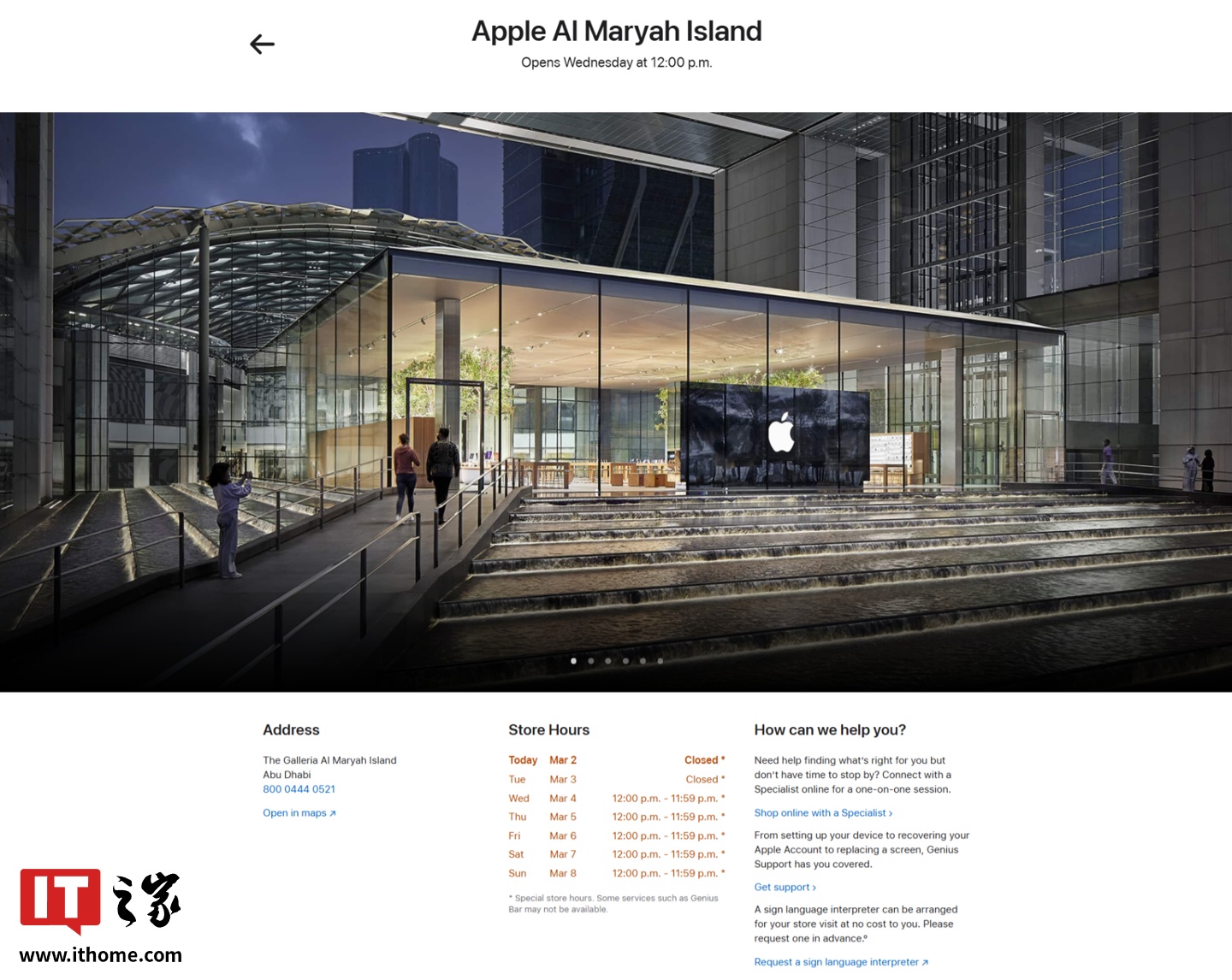 IT之家 3 月 2 日消息,苹果官网显示,其已暂时关闭其位于阿联酋的全部 5 家 Apple Store 零售店,涵盖阿布扎比 3 家门店和迪拜 2 家门店。