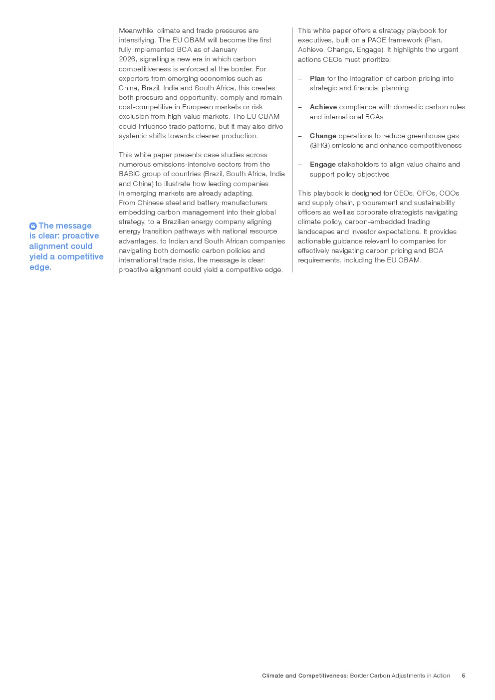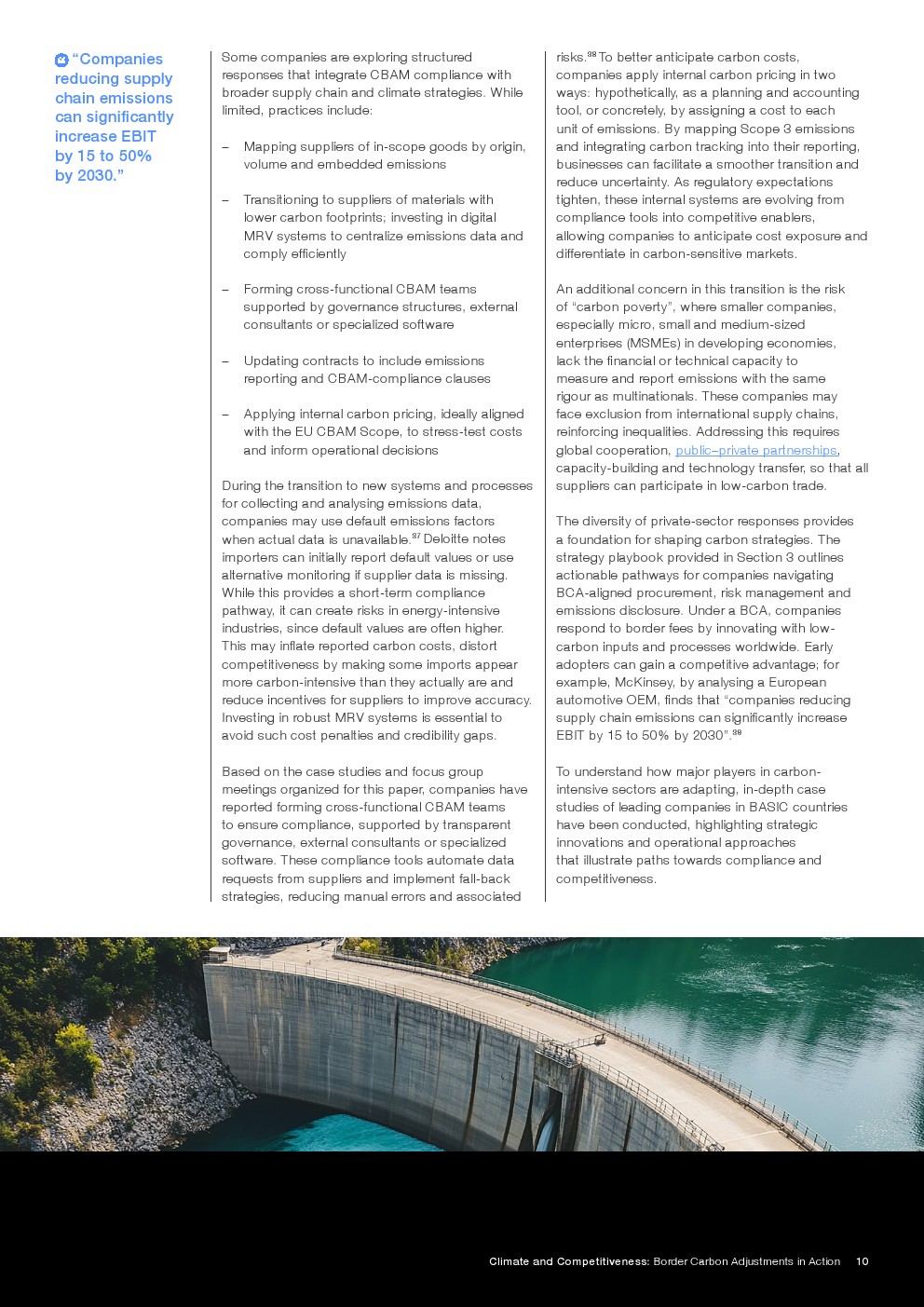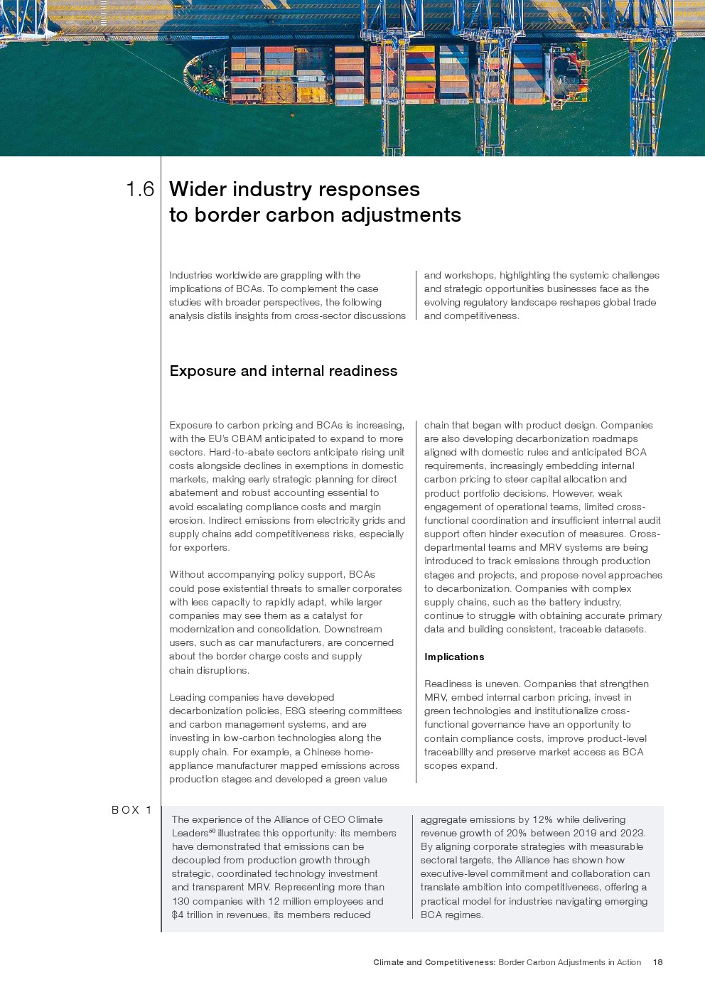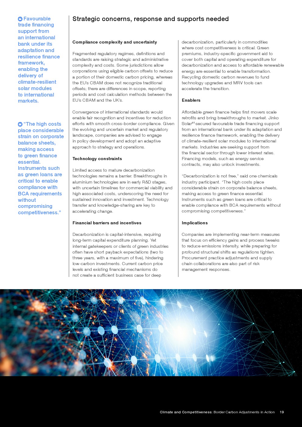 总体而言,碳边境机制正把气候政策嵌入全球贸易规则,从价格信号走向制度重构。短期内,企业面临合规成本、技术瓶颈与金融约束;中长期看,碳效率将成为新的比较优势。能够率先完成MRV体系建设、锁定低碳能源并形成产品级碳足迹透明度的企业,将在全球价值链重组中占据更有利位置。碳竞争力时代已经到来,其核心不在于规避成本,而在于重塑增长模型。