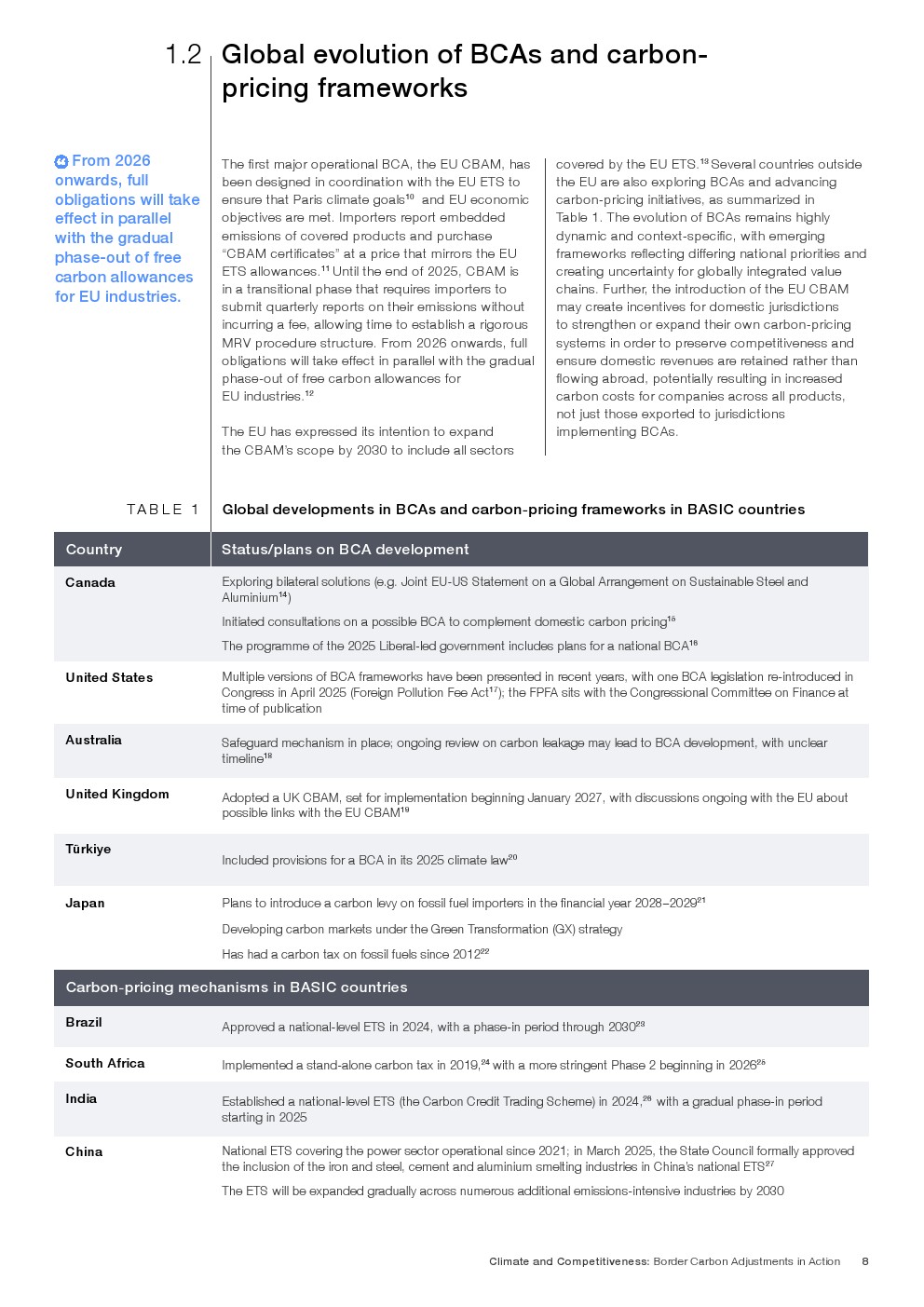 对新兴经济体而言,冲击与机遇并存。以中国钢铁为例,欧盟市场占其钢铁出口的13%,在欧盟生产与进口碳成本占比约17%。测算显示,在碳边境机制下,中国钢铁出口利润或下降58%,出口量减少32% 。与此同时,中国国家碳市场已覆盖电力行业,并于2025年将钢铁、水泥、电解铝纳入,计划2030年前逐步扩围 。国内外双重碳约束正在形成叠加效应。