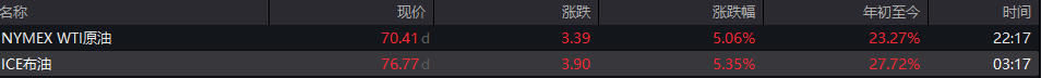 从实时行情来看,今日国际油价高开低走,截至发稿,布伦特、 WTI涨幅均在5%左右。 高明宇 表示, 预估布伦特原油上涨周期分别在 2周、1个月、2-4个月左右,目标位分别指向约77美元/桶、80-85美元/桶、90-100美元/桶。