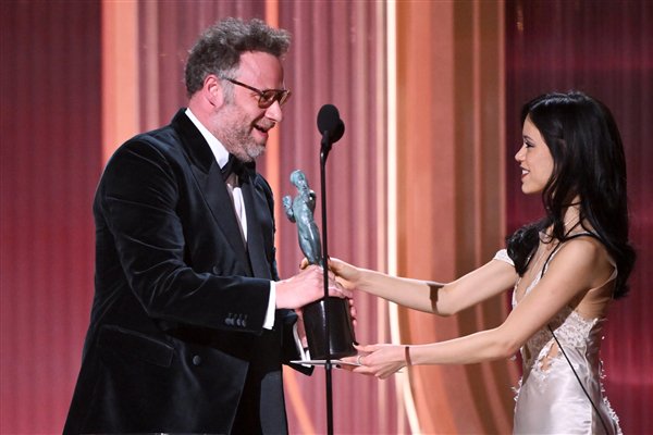 此外,塞斯·罗根凭借在《片场风云》长的角色拿到喜剧类最佳男演员奖,为罗根颁奖的是“星期三”奥尔特加: