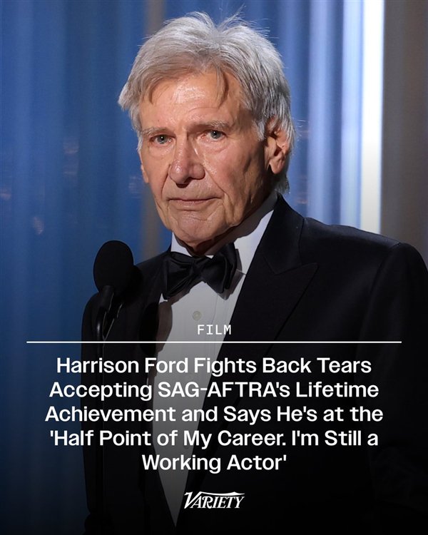 哈里森·福特于当地时间周日晚接受了美国演员工会(SAG)颁发的终身成就奖: