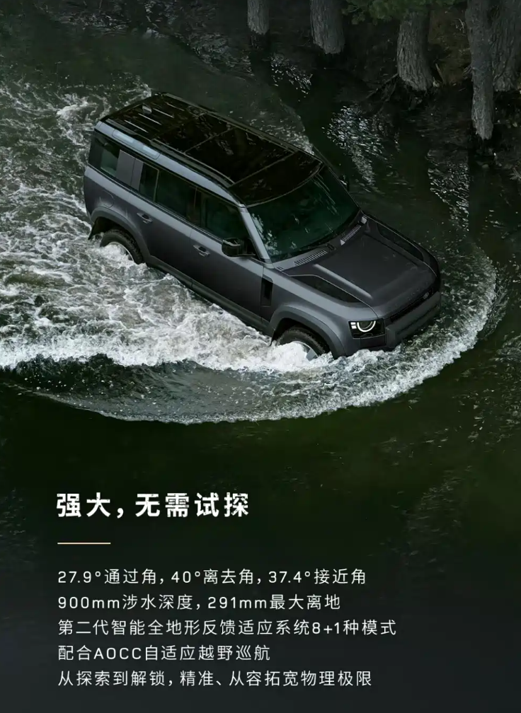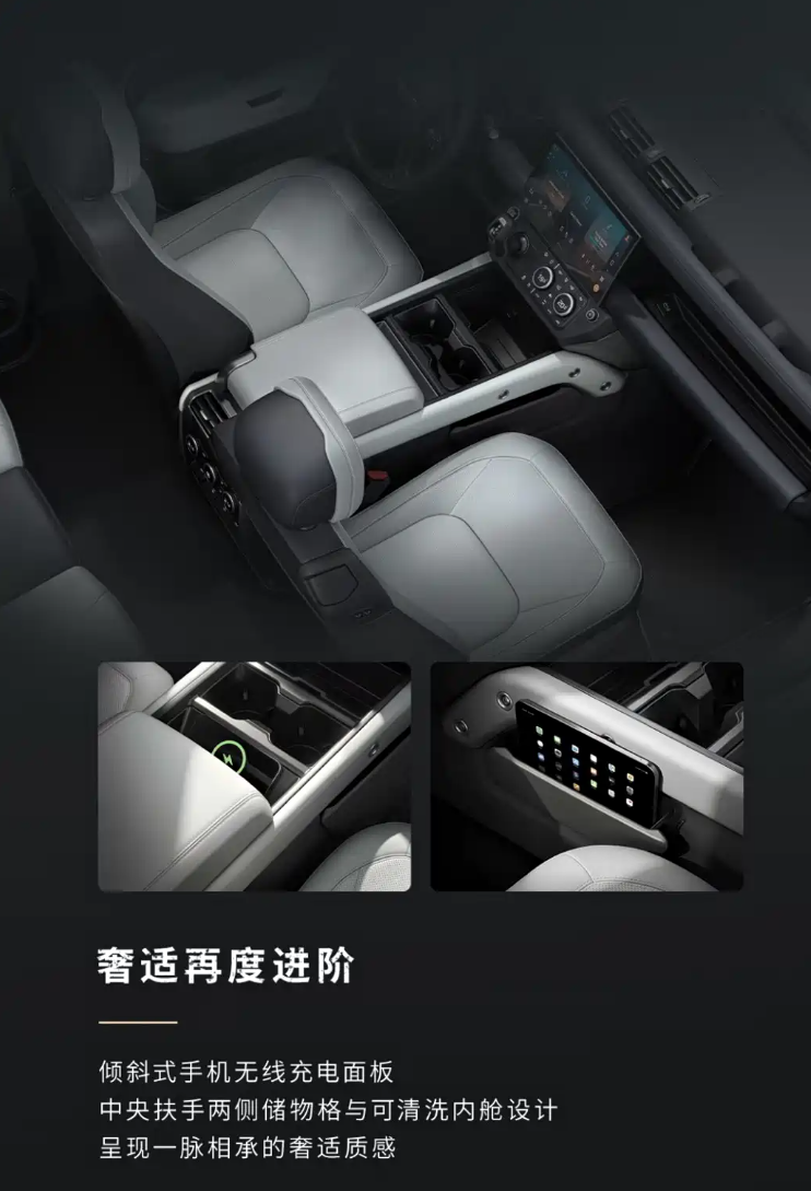 产品布局方面,卫士系列新增传奇版及 130 3.0T P400 X-Dynamic HSE 车型,进一步丰富消费者选择。全系车型中控屏由 11.4 英寸升级至 13.1 英寸,并配备熏黑方圆形 LED 尾灯、全新 22 英寸 7 辐哑光灰钻石切割轮圈及倾斜式手机无线充电面板。外观色彩方面新增传奇黄车漆选项。