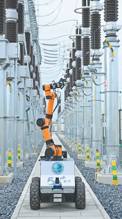 安徽滁州南谯区一座变电站,5G智能巡检机器人对供电设备进行巡检。