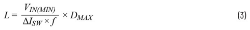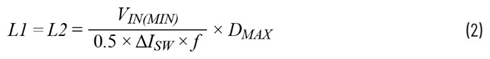 给定工作输入电压范围,并选择了电感中的工作频率和纹波电流后,可使用公式2来确定SEPIC转换器的电感值(L1和L2不相关)。