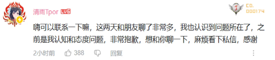 让不少人费解的是,从玩家最质朴的情感上出发,清雨作为一个从业时间不短的游戏主播,理应明白游戏里的回忆、心血对玩家来说有多重要,他自己也曾因为坑了队友而内疚。这么多年过去,在面对另一个玩家投来的信任时,他却最终变成了这副模样。