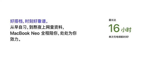 在电脑性能普遍过剩的今天,苹果用MacBook Neo告诉消费者:充沛的电量、丝滑的系统和省心的生态互联,其实比配置表上多出来的几个G内存更实在。