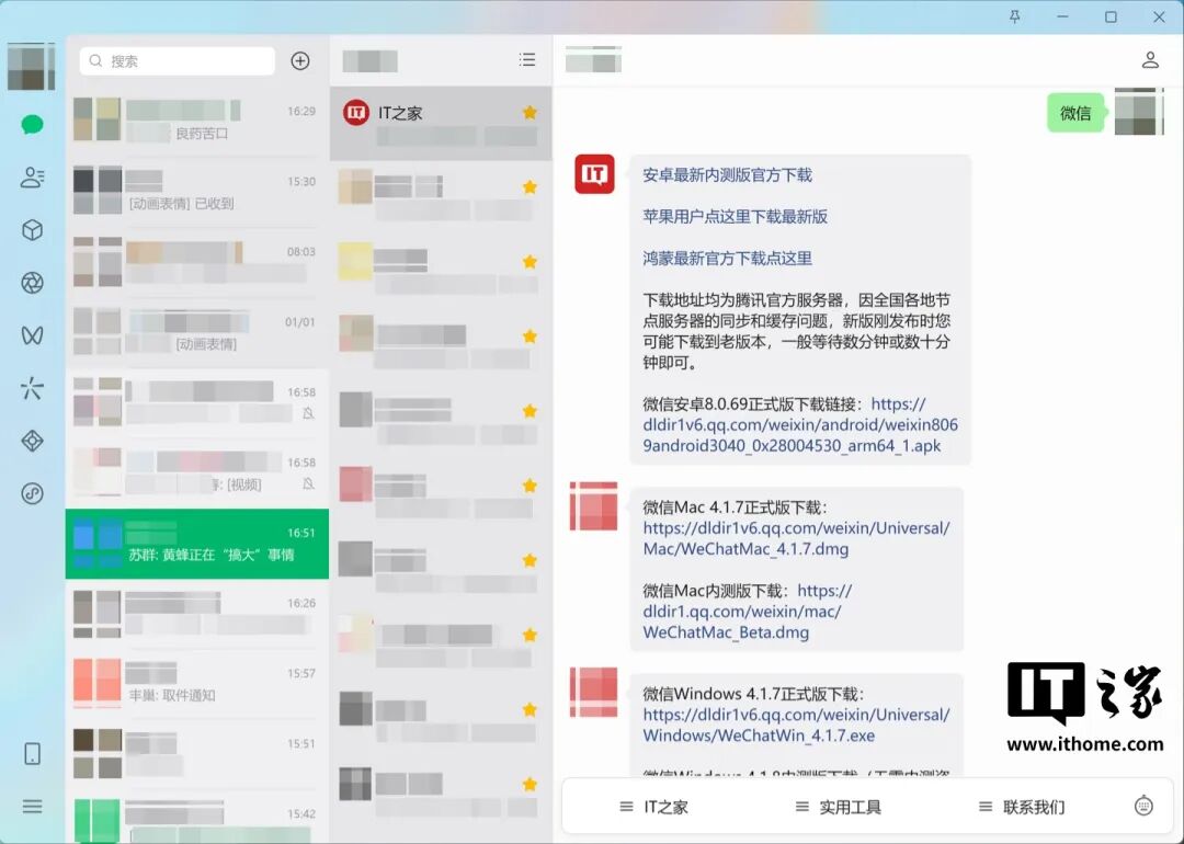 大家在IT之家微信号回复“微信”两字,即可获取当前最新官方内部版微信下载。