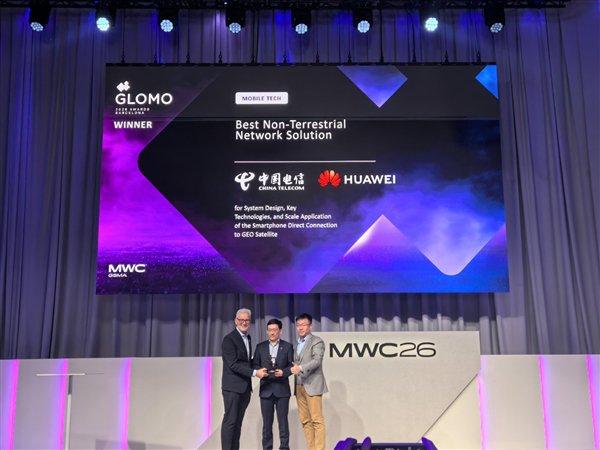 快科技3月5日消息,在2026年世界移动通信大会上,华为与中国电信联合研发的手机直连天通卫星项目斩获GSMA GLOMO“最佳非地面网络方案”国际大奖。