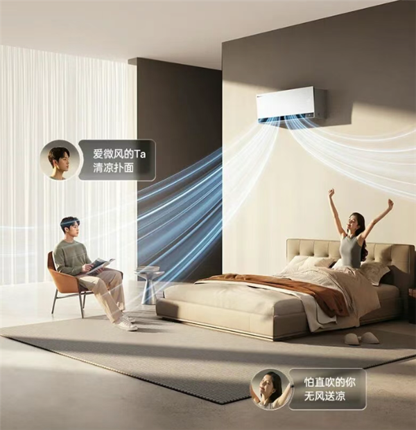 其核心的双人双风感设计,通过双电机独立驱动扫风叶片,让左右分区三档可调,满足不同人对风感的差异化需求。
