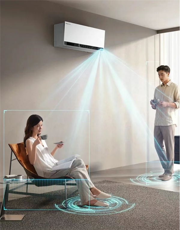 该产品搭载海信与海思联合开发的星闪人感2.0技术,可精准识别人体位置与轨迹,实现风随人动、风避人吹等智慧送风效果,还支持6米远距120°广角识别,多人场景下也能精准控风。