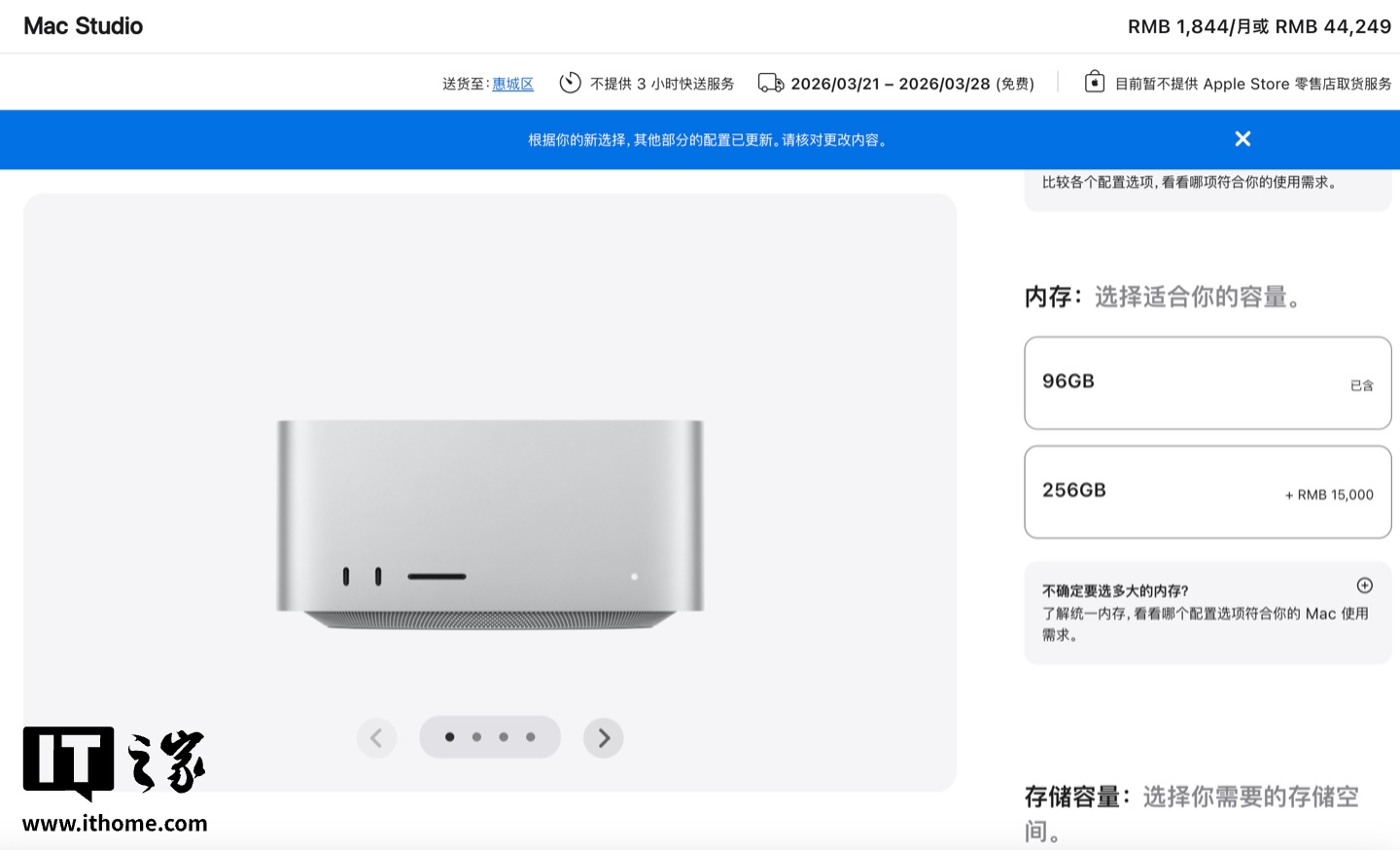 IT之家查询苹果官网发现,目前 Mac Studio 确实没有了 512GB 内存选项。