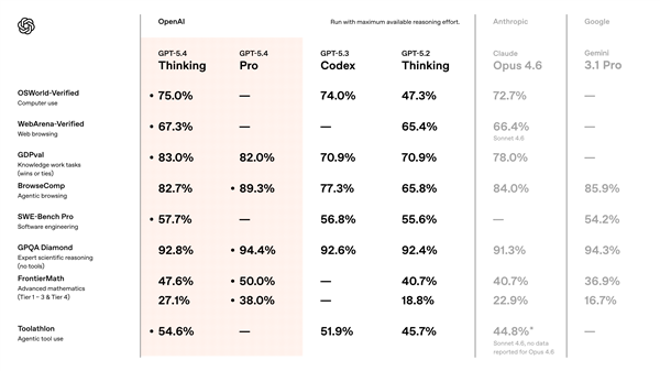 未经允许不得转载:紫竹林-程序员中文网 » OpenAI最强模型GPT-5.4重磅发布 首次支持原生操控电脑 超越人类
