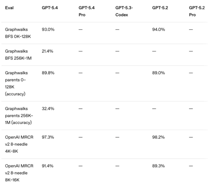 GPT-5.4 在 API 中支持最高 100 万 Token 的上下文窗口,相当于可以把一个完整项目的所有相关文档一次性塞进同一次对话。但从测试结果来看,128K 至 272K 是表现最稳定的区间,适合日常使用。