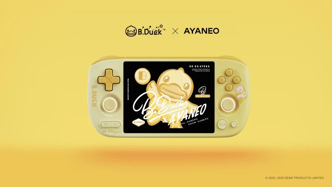 IT之家 3 月 6 日消息,AYANEO 今日官宣推出 Pocket AIR Mini x B.Duck 小黄鸭联名限定款掌机(售价暂未公布),新机的机身印有小黄鸭元素,主题色为 IP 标志性的黄色。