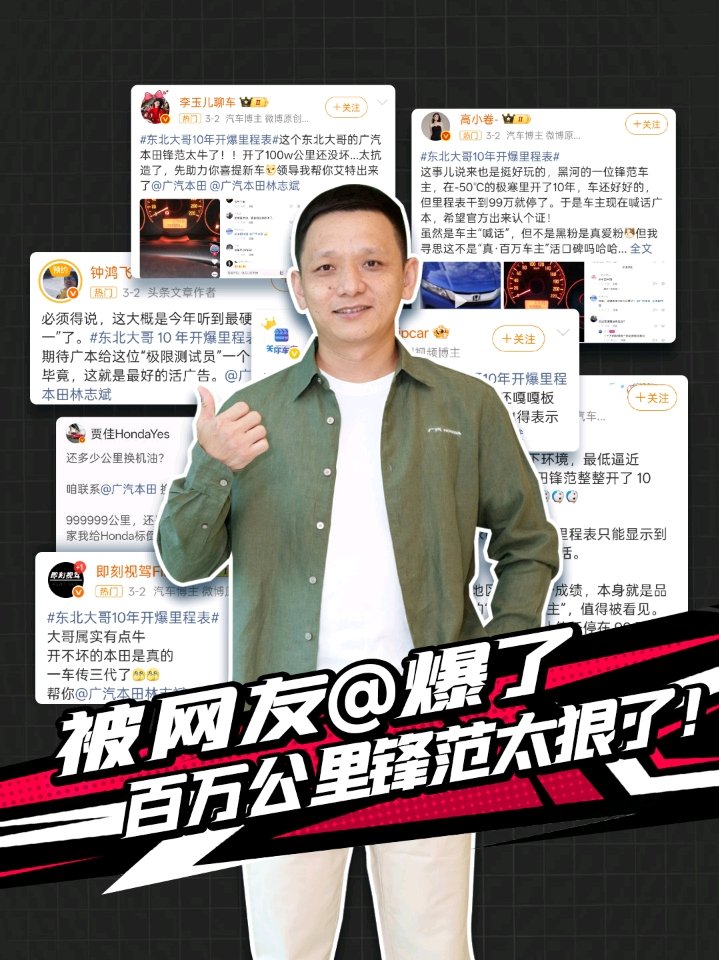IT之家 3 月 6 日消息,据广汽本田汽车有限公司副总经理林志斌分享,一名锋范车型的车主用 十年时间,将车辆里程数开到了 999999 公里,已“干爆”里程表(驾驶里程超百万公里,里程表不再转动)。