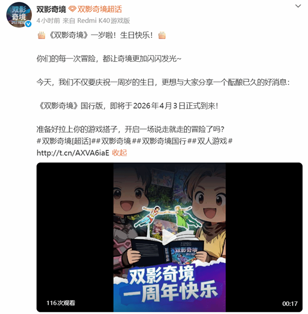 快科技3月6日消息,在《双影奇境》发行一周年之际,官方宣布国行版将于4月3日上线。