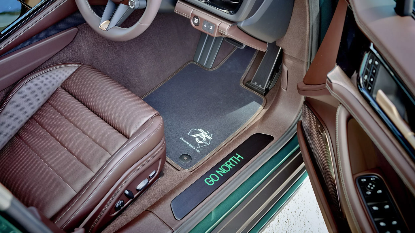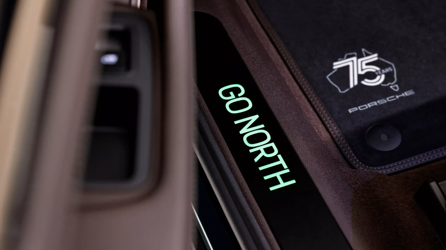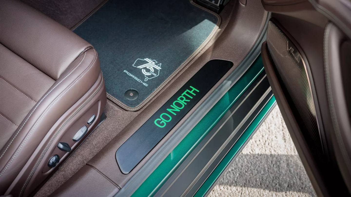 “向北”(GO NORTH)版 Panamera 4 E-Hybrid 呼应澳大利亚北方热带雨林,该车通体采用祖母绿金属漆,点缀以 21 英寸钕色轮毂与酸性绿卡钳;内饰则以夜绿色缝线搭配桉木饰板,并加装了车顶行李箱以增强长途旅行的实用性。