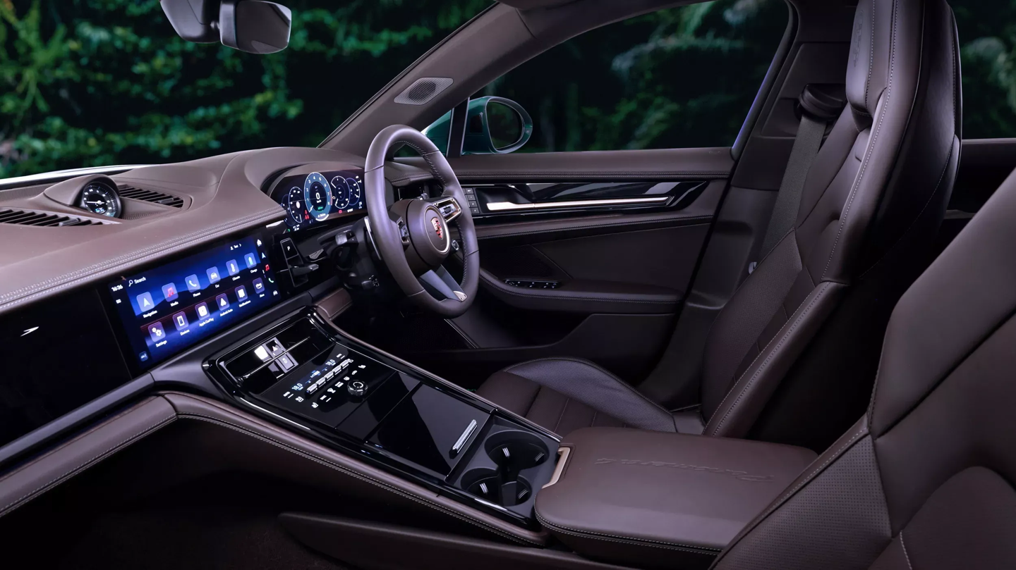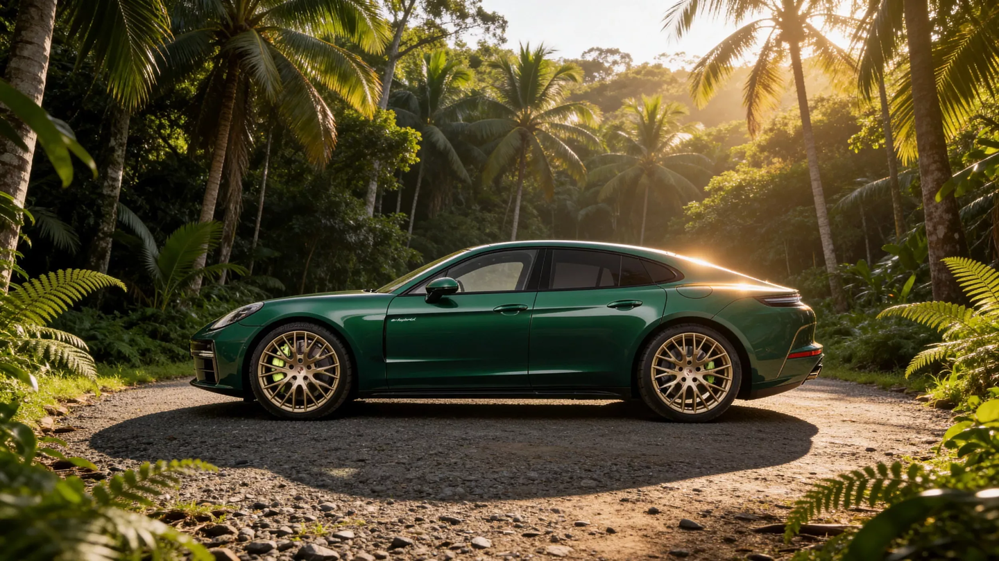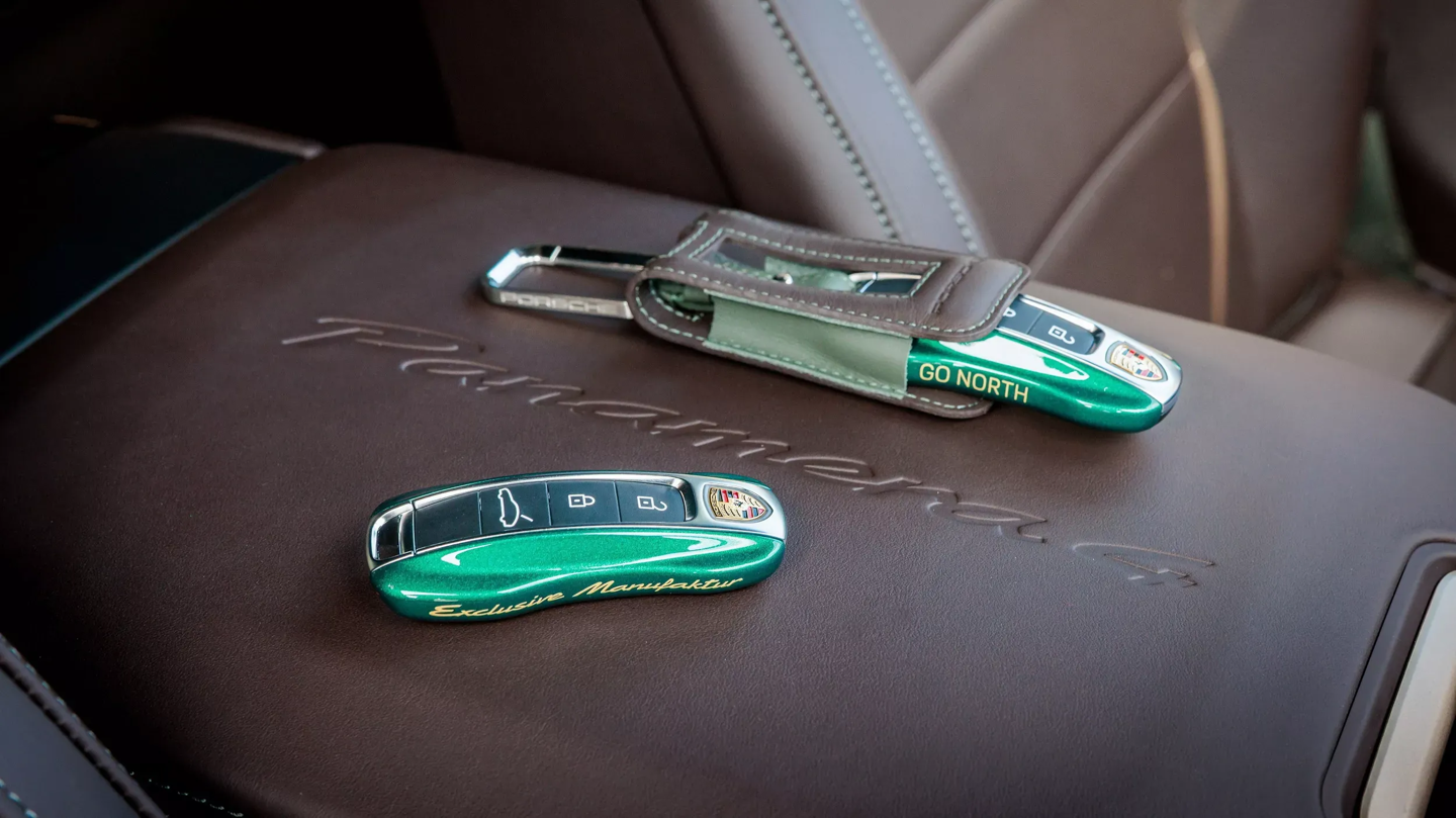 “向北”(GO NORTH)版 Panamera 4 E-Hybrid 呼应澳大利亚北方热带雨林,该车通体采用祖母绿金属漆,点缀以 21 英寸钕色轮毂与酸性绿卡钳;内饰则以夜绿色缝线搭配桉木饰板,并加装了车顶行李箱以增强长途旅行的实用性。