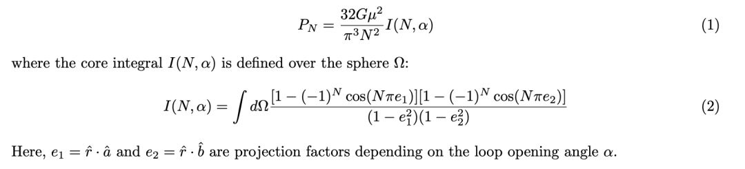 具体来说,有一个核心积分 I(N, α)—— 描述宇宙弦环第 N 谐波发出的辐射强度。