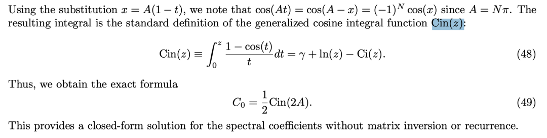 最终,结果可以用余弦积分函数 Cin (z) 精确表达 —— 一个封闭的解析表达式,无需数值近似,适用于任意环几何结构下的任意 N。