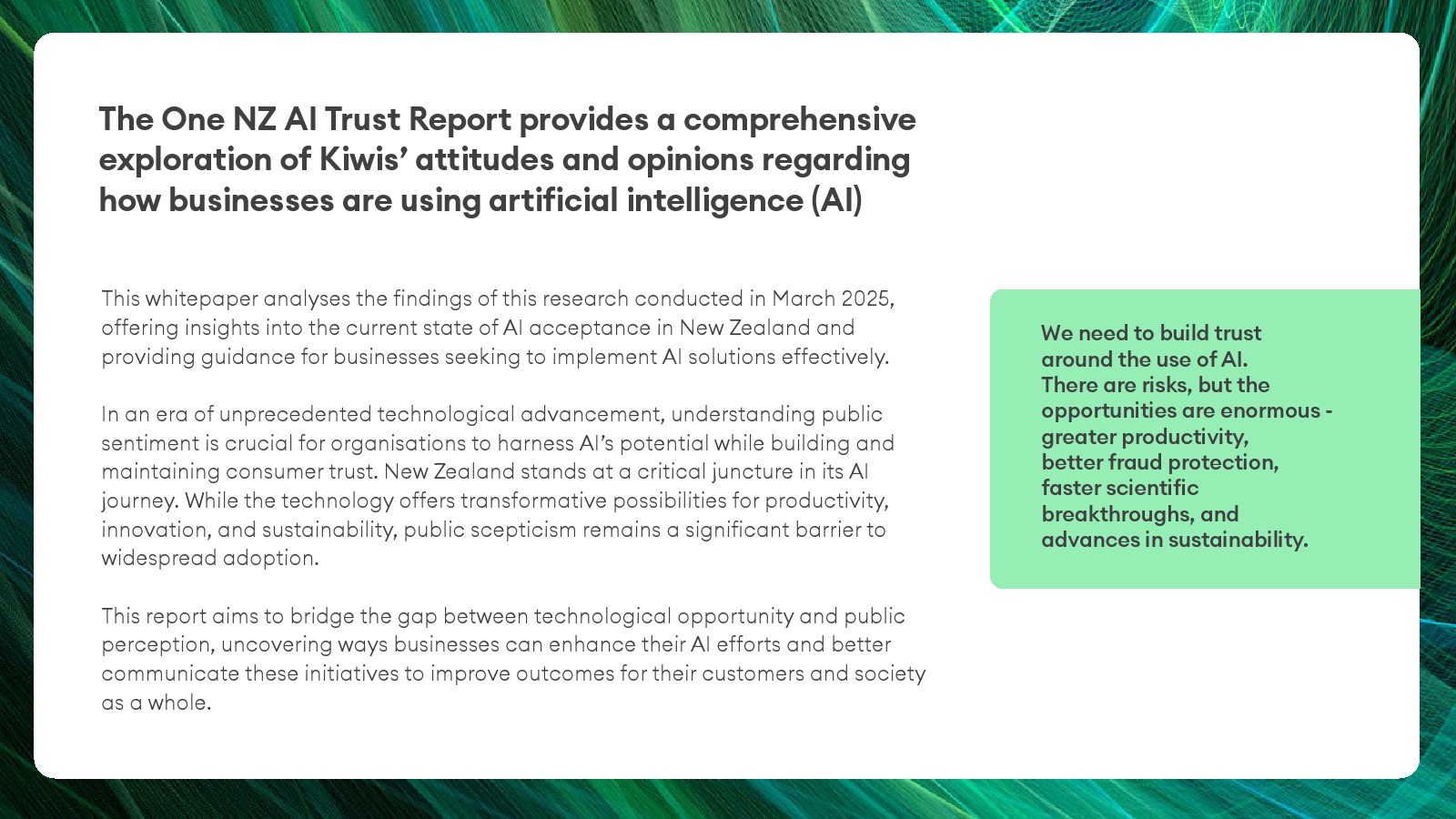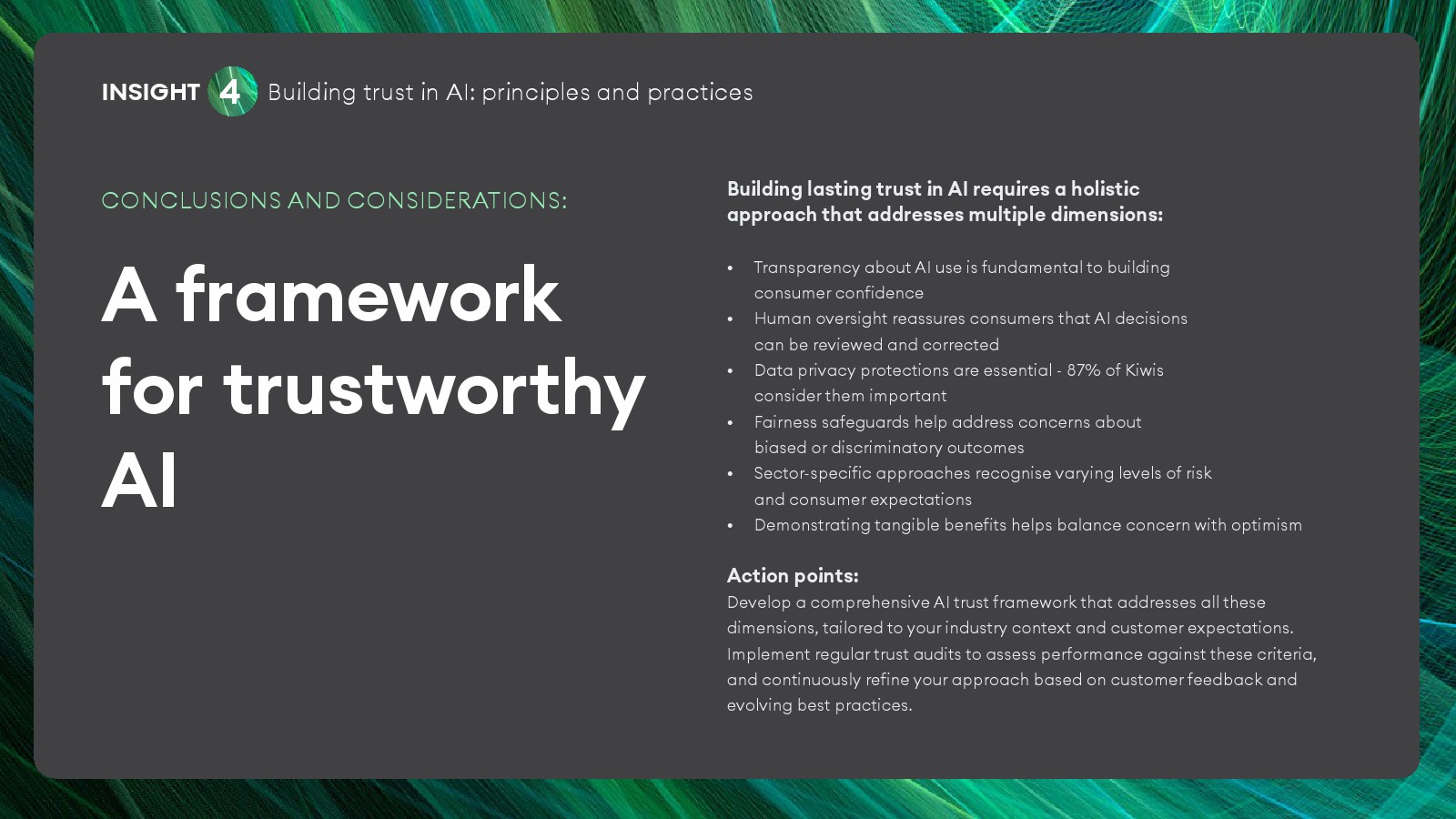 从长期趋势看,新西兰AI社会接受度正处于“使用领先、信任滞后”的过渡阶段。技术应用已进入广泛普及期,但社会治理与伦理框架仍在形成之中。未来AI竞争的关键不再只是技术能力,而是数据治理、透明度与人类监督机制。能够同时提供效率提升与信任保障的企业,将在下一阶段AI经济中获得显著的制度与品牌优势。