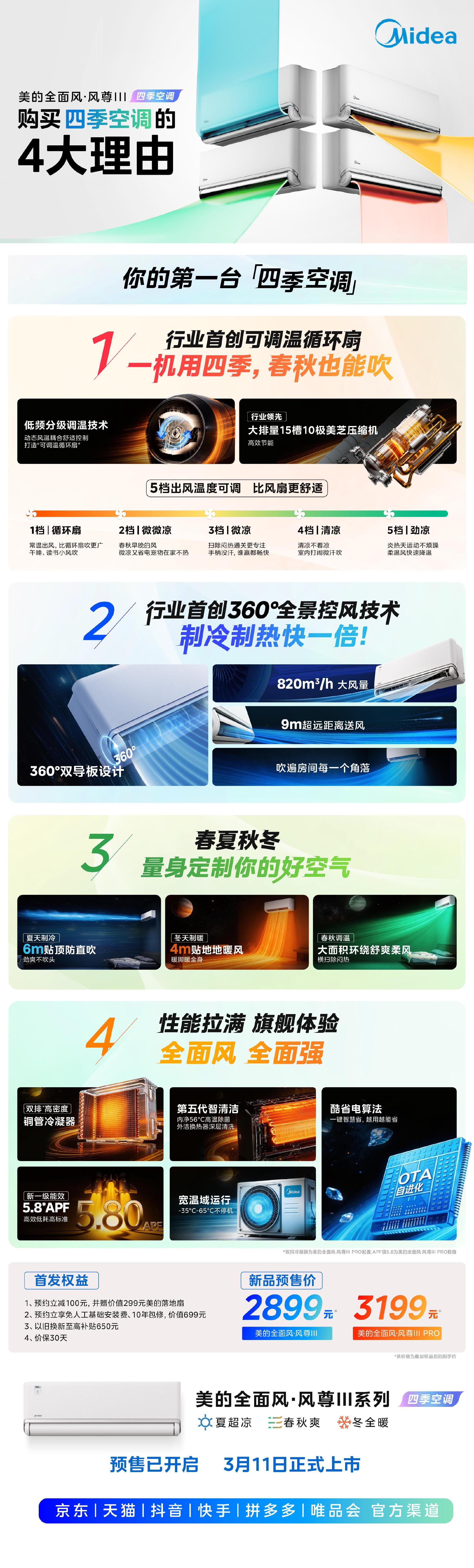 从夏日的全域速冷,到冬日的足底暖流,再到春秋的除闷焕新,美的风尊三代以航天同源技术为基石,通过360°全景控风与低频分级调温两大核心科技,彻底打破了季节对空调使用的限制。它不仅是一台性能旗舰,更是护航家庭365天全季候舒适生活的可靠伴侣。