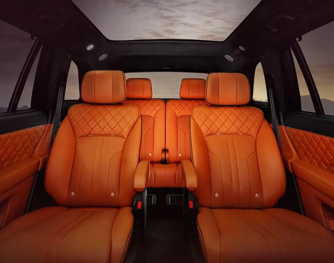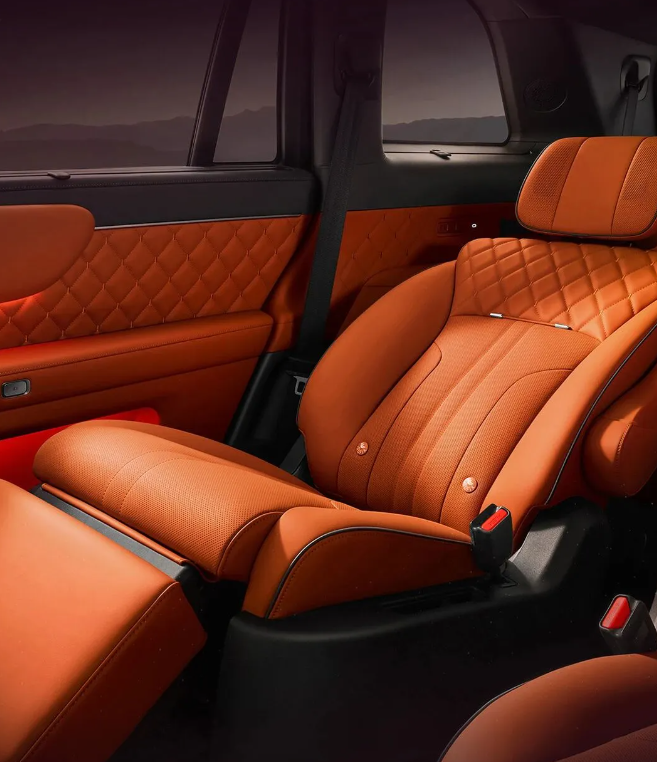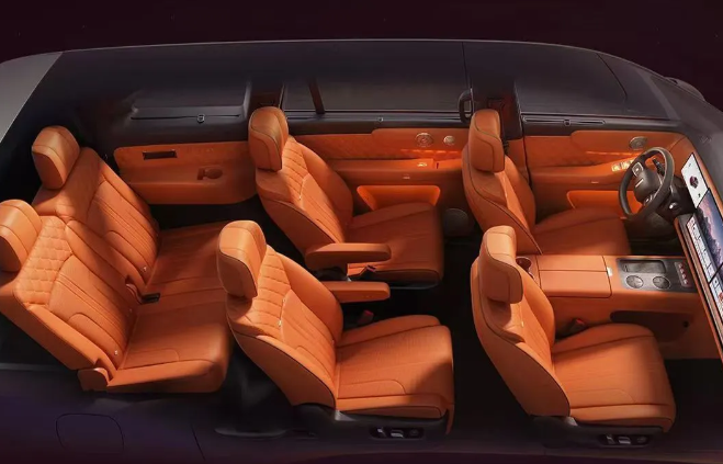 该车采用内饰环保材料,地毯植入椰壳炭,全车 19 平米抗菌皮革;Nappa 真皮座椅,甄选头层皮胚,细腻纹理与温润触感;拱阵 3D 绗缝刺绣工艺,全车 12 处刺绣,总计 3.8 万余针;尊享二排右侧零重力座椅,22 点全身按摩(含腿托 4 点按摩),7 种按摩模式,3 档力度调节;三排吧台大扶手,扶手宽度 138mm。