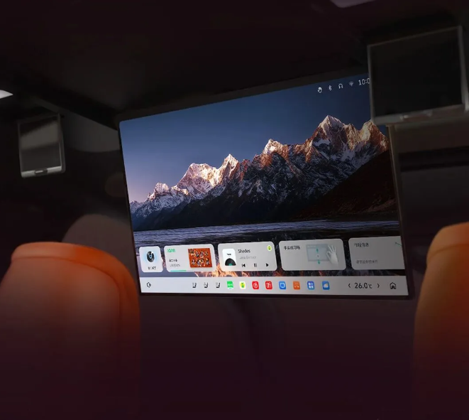该车搭载 Coffee AI Sound 殿堂声音响系统,31 个扬声器 8.1.4.8 音响布局,音响峰值功率 3080W,支持杜比全景声,声场分区。此外,该车还配备 21.4 英寸 4K 后排智慧屏、前排双 17.3 英寸 3K 智慧屏、智能电动隐藏式空调出风口、车载冰箱、全车电动电吸门等配置。