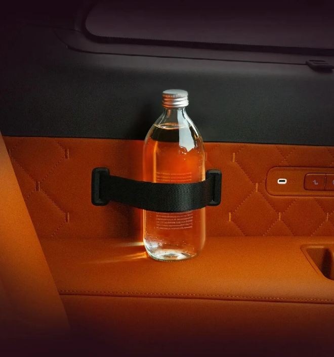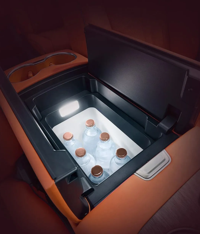 细节方面,该车独创门板无线充电,副驾及二排门板至高 50W 无线充电,全车共 13 处充电位;三排大肚杯绑带,可存放直径 60-110mm 尺寸物品;全车 6 处遮阳帘,一二三排皆可防晒;一二排上车关怀拉手,老人轻松上车。