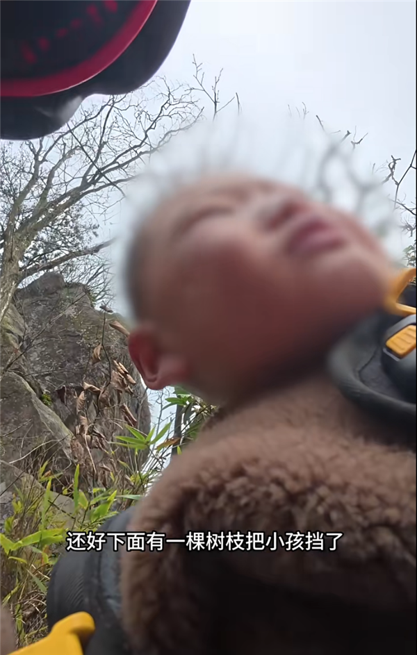 万幸的是,坠落途中一棵树枝挡住了孩子,为后续救援赢得了时间。