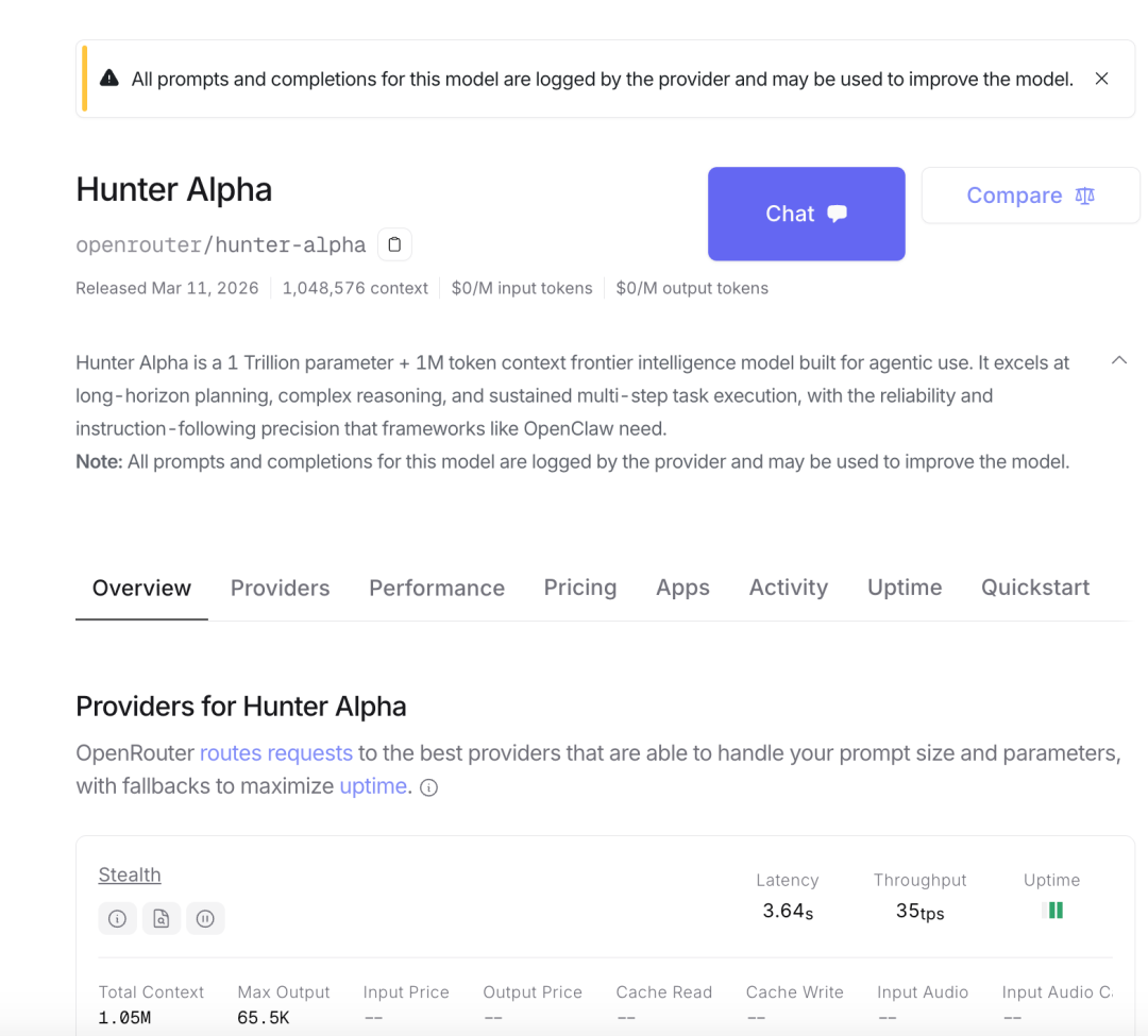 还有海外博主通过 OpenRouter 平台挖掘到 Hunter Alpha 来自中国的信息: