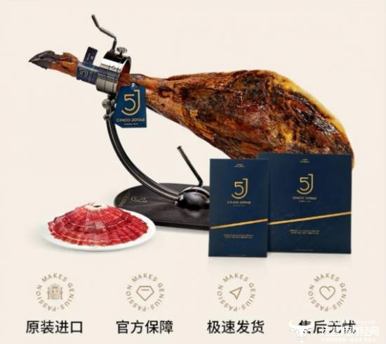 同样稀缺难见的,还有来自西班牙的5J黑标火腿。在伊比利亚,每一头5J黑猪都拥有“橡果自由”。官方标准规定,每头猪至少需要活动在2万平方米以上的橡树林,一生要吃掉60棵橡树的果实,生长周期长达18-24个月。当这样一整条5-6kg的带骨前腿出现时,它早已超越了食材的范畴。