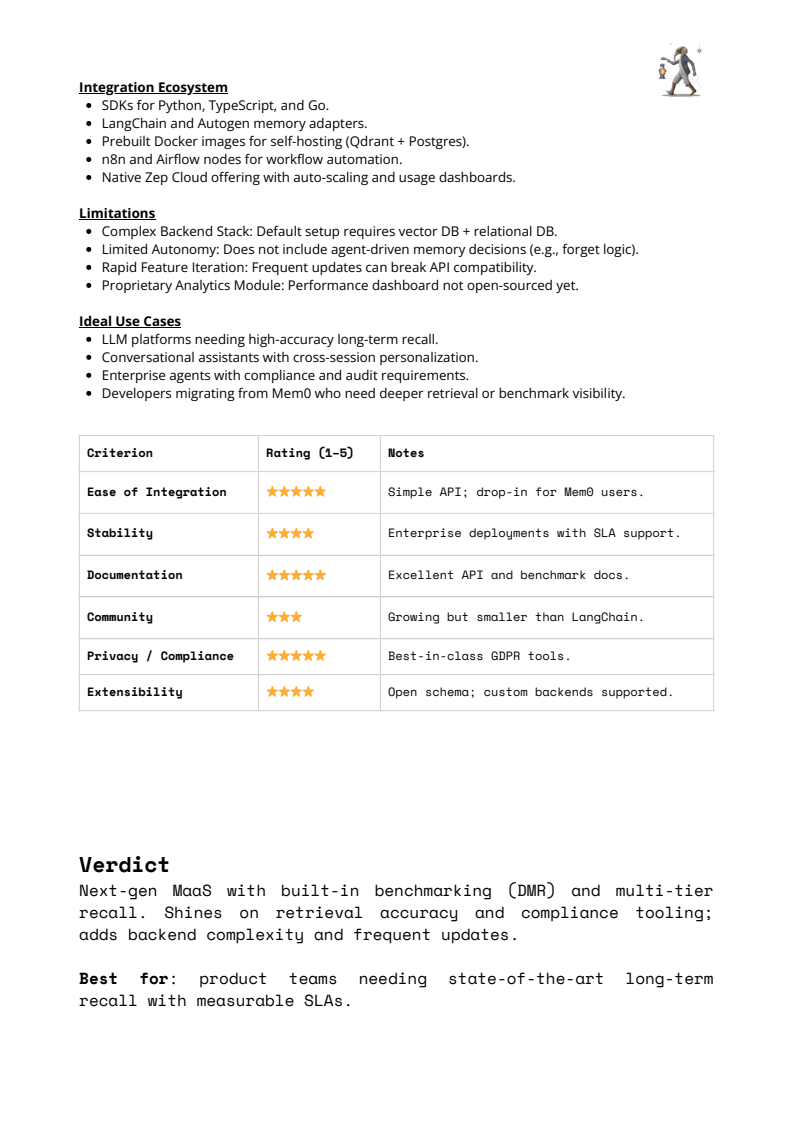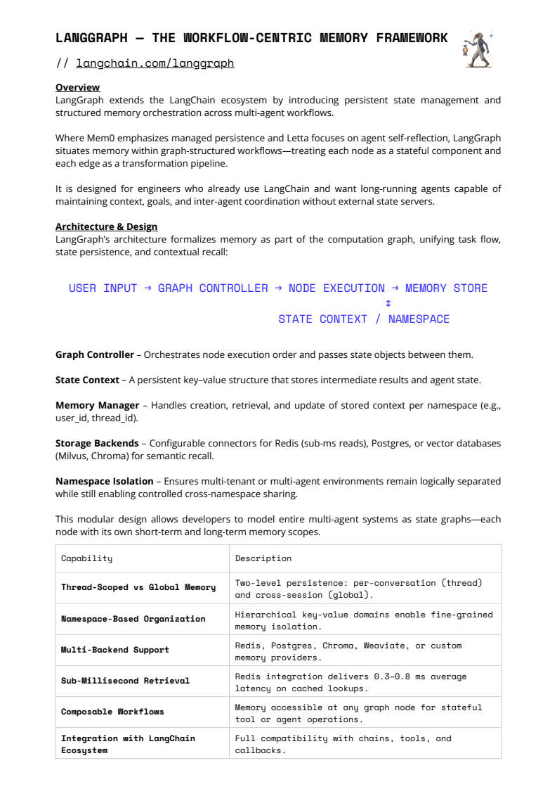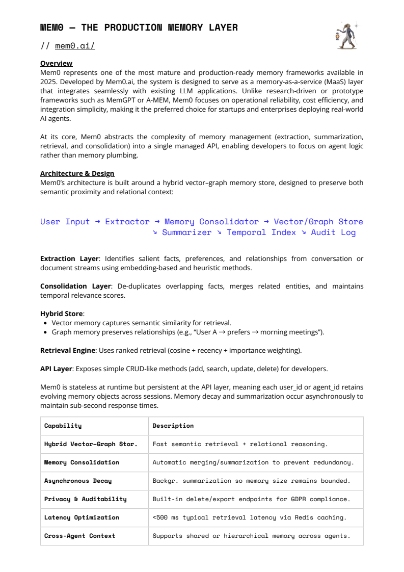 从产业格局看,2025年的记忆框架已出现清晰分层。Mem0 以混合向量+图结构和托管化服务,在生产环境中实现约26%的准确率提升与91%的延迟降低,成为效率导向型团队的首选。Zep 进一步引入多层记忆与 DMR 基准,强化可衡量性与合规能力,但系统复杂度上升。LangGraph 将记忆嵌入工作流状态,适合多 Agent 协作,却在对话召回上依赖额外优化。Letta 与 A-MEM 更偏研究取向,强调自主记忆调度或自演化图结构,但在稳定性与成本上仍难以规模化落地。