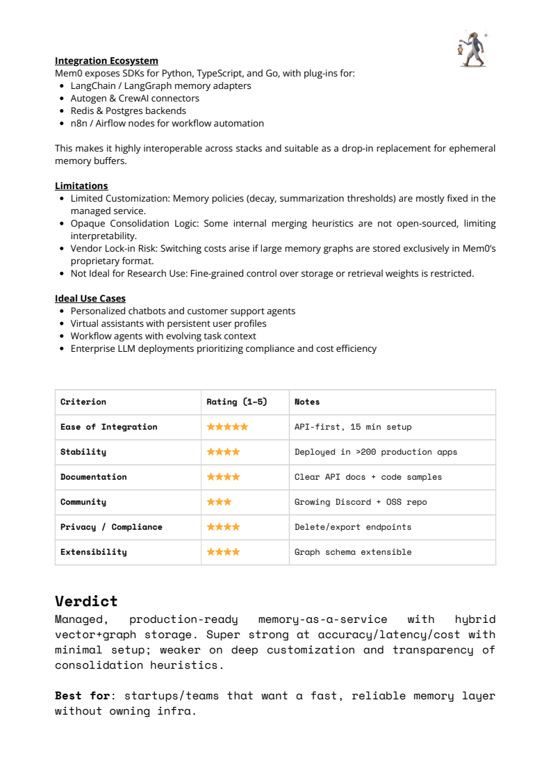 从实施成本看,记忆系统的门槛差异显著。托管式方案可在15分钟内接入,而自定义或研究级方案往往需要数周工程投入,并伴随运维与治理成本。报告强调,框架选择并不存在“最优解”,而是高度依赖现有技术栈、延迟容忍度、合规要求与产品阶段。盲目将 RAG 当作记忆替代,往往导致高投入、低复利的路径依赖,是当前初创团队最常见的结构性误判之一。