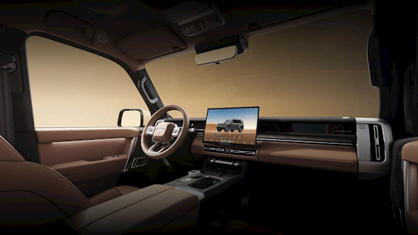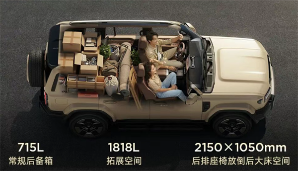 长宽高分别为4909/5055*1976*1855/1894mm,轴距2910mm,定位于中大型SUV,配合21英寸轮圈,拥有24.5°接近角/离去角、220mm最小离地间隙、最大涉水深度600mm。