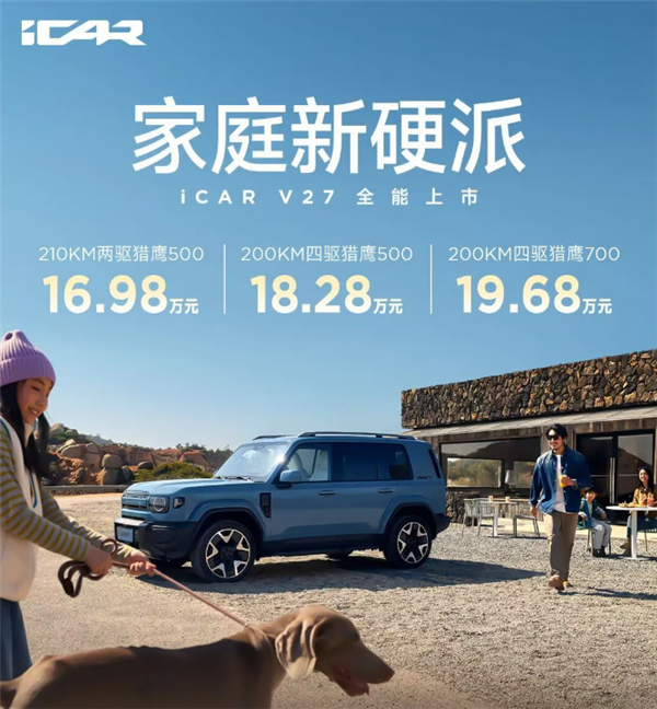 快科技3月13日消息,今晚,奇瑞旗下的iCar V27方盒SUV正式上市,共推出三款配置车型,售价区间16.98-19.68万元,很显然,竞争目标直指比亚迪的方程豹钛7。
