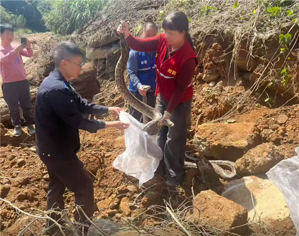 救助人员介绍,缅甸蟒属于无毒蛇类,此次集中出现,也反映出当地生态环境持续改善,后续待确认蟒蛇无伤病后,工作人员会联合林业部门,将它们放归到远离居民区、植被丰茂的适宜栖息地。